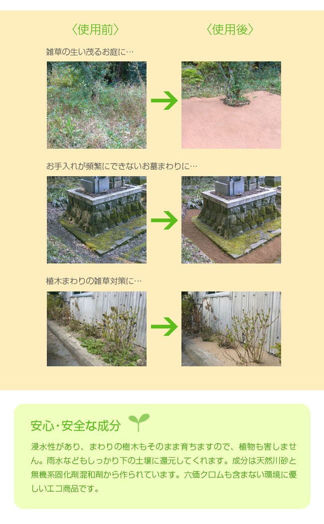 雨が降るとぐちゃぐちゃになる地面や、雑草が生い茂った庭、風が吹くと砂が舞うなどといった問題を簡単に解決してくるのが魔法の土にかちかちくんです。