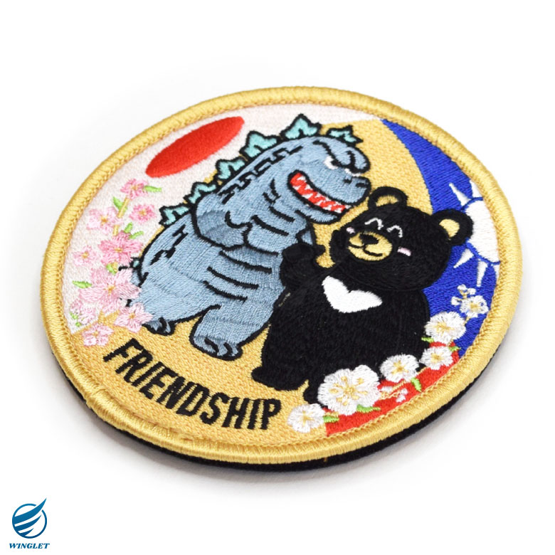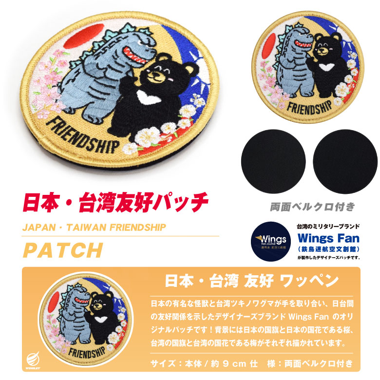 日本 台湾 友好 パッチ 刺繍 両面 ベルクロ 付き ワッペン JAPAN TAIWAN FRIENDSHIP 怪獣 ベア ミリタリー ワッペン グッズ アイテム