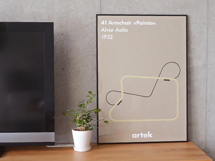 フィンランドを代表する建築家、Alvar Aalto(アルヴァ・アアルト)によってデザインされたアームチェア、Paimio(パイミオ)。こちらは彼の代表作でもあるその椅子が描かれたポスターです。