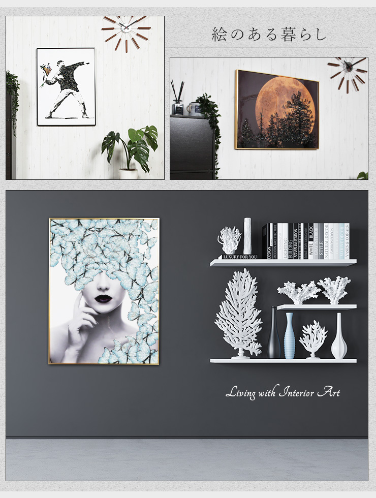 水晶絵 アートポスター 壁掛け 80×60cm アートパネル クリスタル 絵画 ラメ 立体 女性 風景 バンクシー インテリア ピクチャーアート