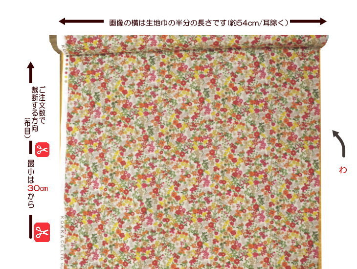花柄 生地 リバティ風のシンプルで素敵なお花柄です。