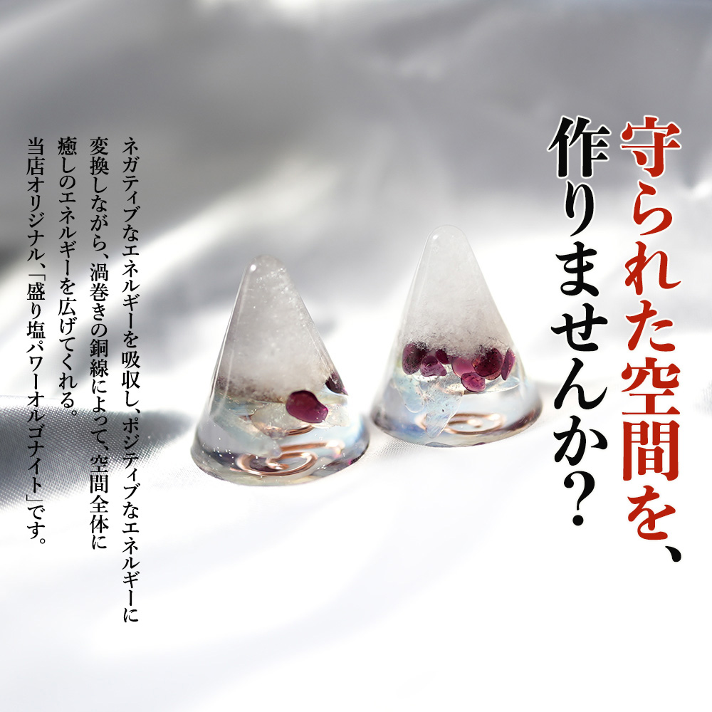 当店オリジナル「盛り塩パワーオルゴナイト」を、ぜひご自宅などのお守りとしてお使いください。